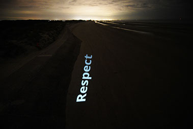 In the evening, after sunset, the word ‘Respect’ was projected onto the beach.